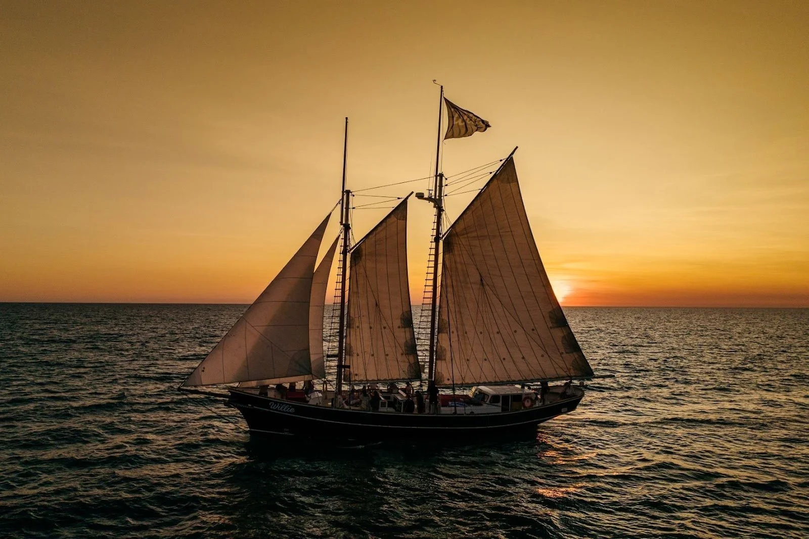 Set sail on the journey of a lifetime with Willie Pearl Lugger Cruises, where history and natural beauty converge. The Willie is a beautiful gaff-rigged schooner, modelled off a 1900s pearl lugger. The Willie brings the early 20th century to life and is the perfect vessel for navigating the pristine waters surrounding Cable Beach and Roebuck Bay in Broome.